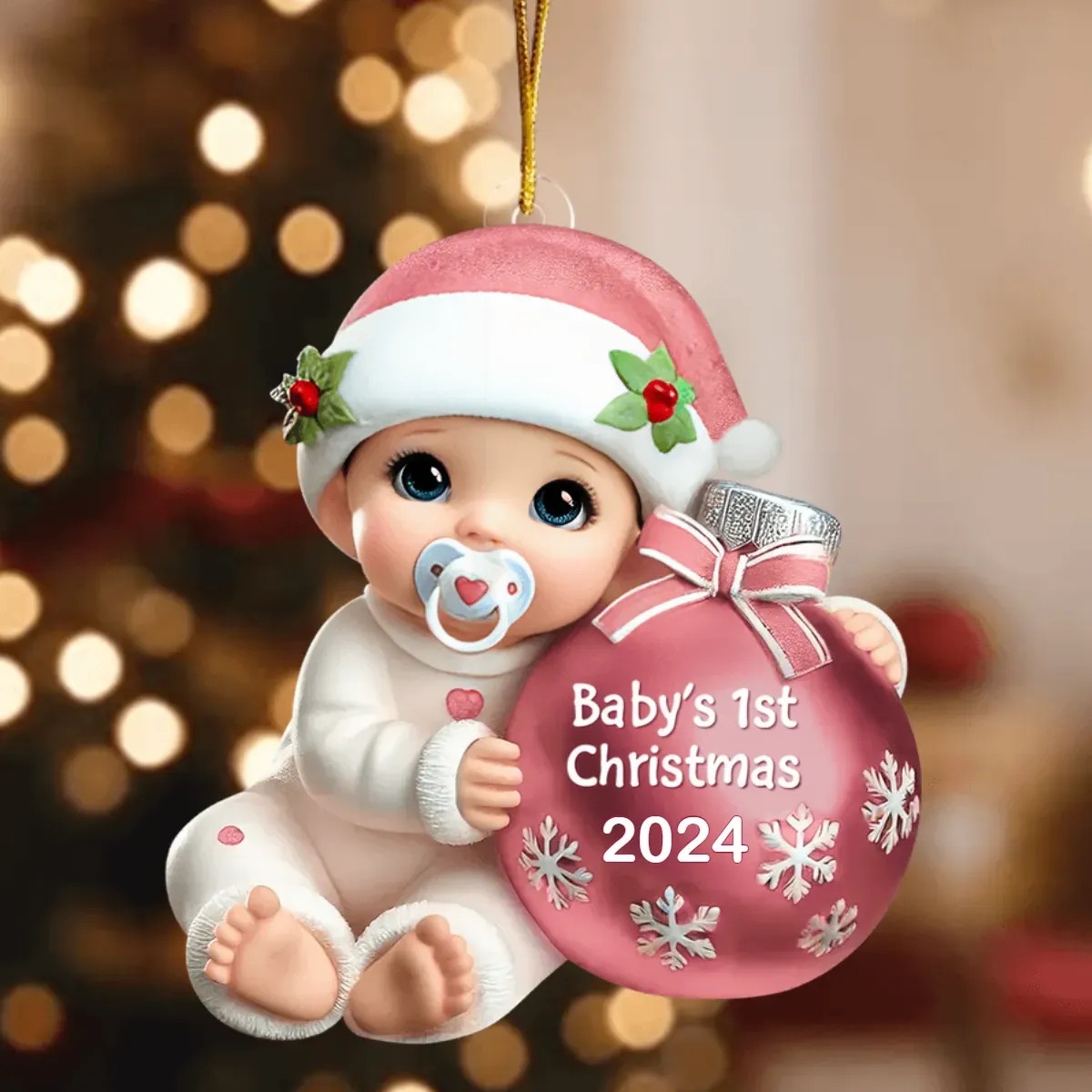 Baby Beside Christmas Bauble 3D Effect Baby's First Christmas Personalized Ornament