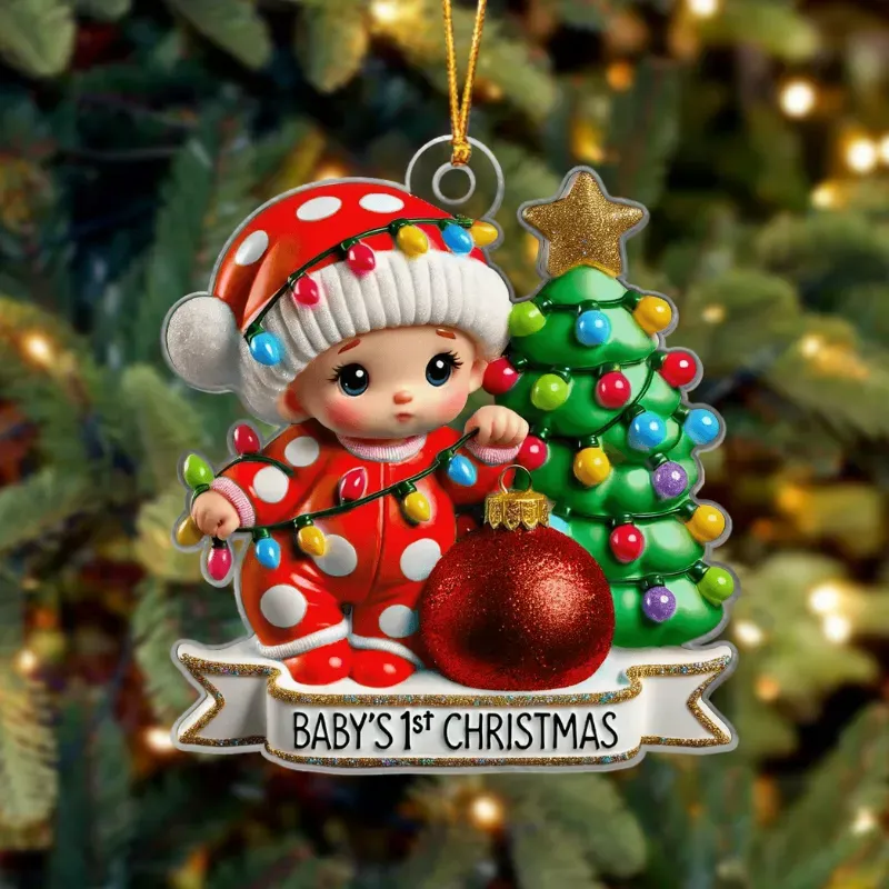 Baby First Christmas 3D Effect Personalized Acrylic Ornament - Gift for Newborn