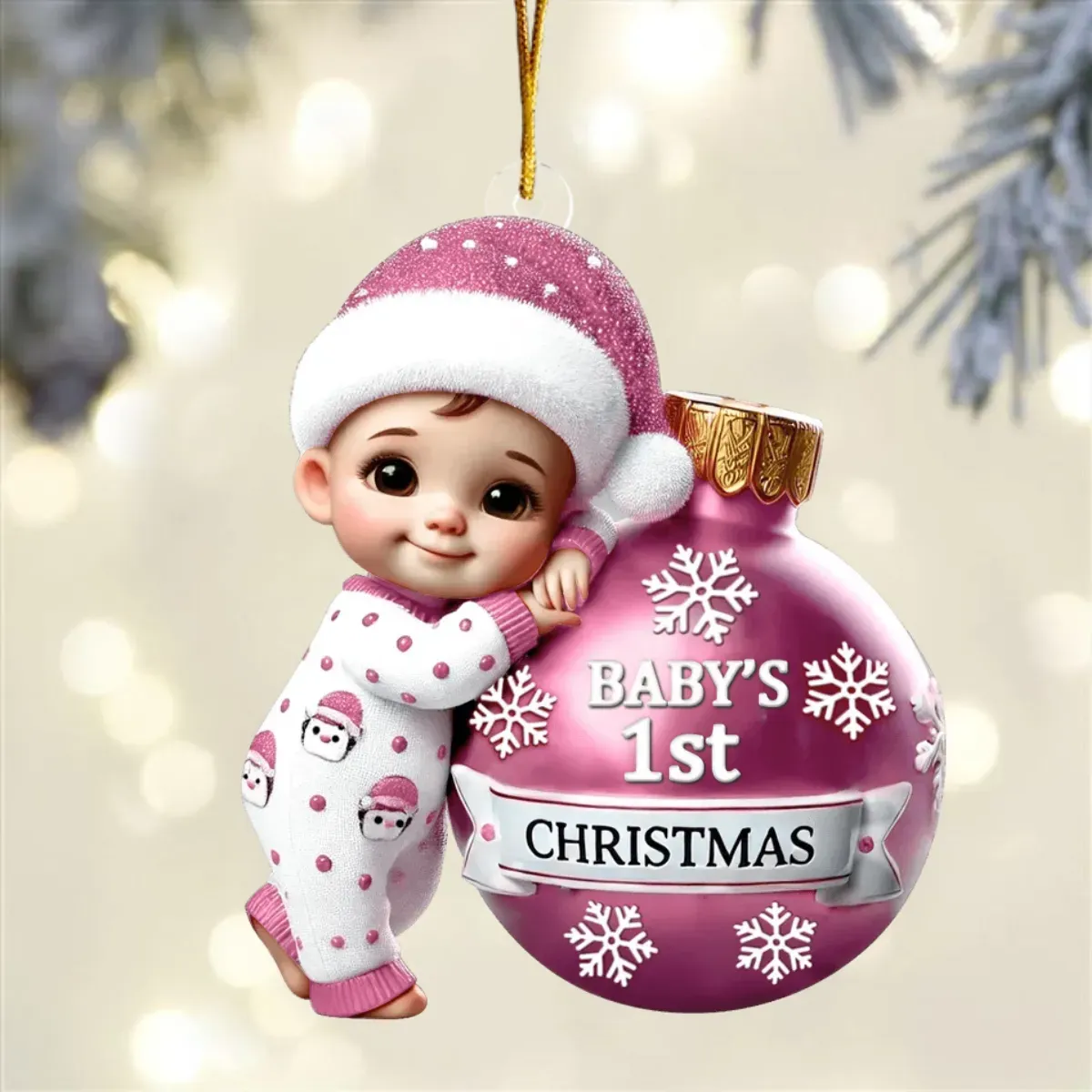 Baby Holding Bauble First Christmas Personalized Acrylic Ornament