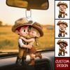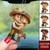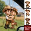 Cartoon Style Countryside Couple Cowboy Cowgirl Personalized Car Ornament