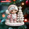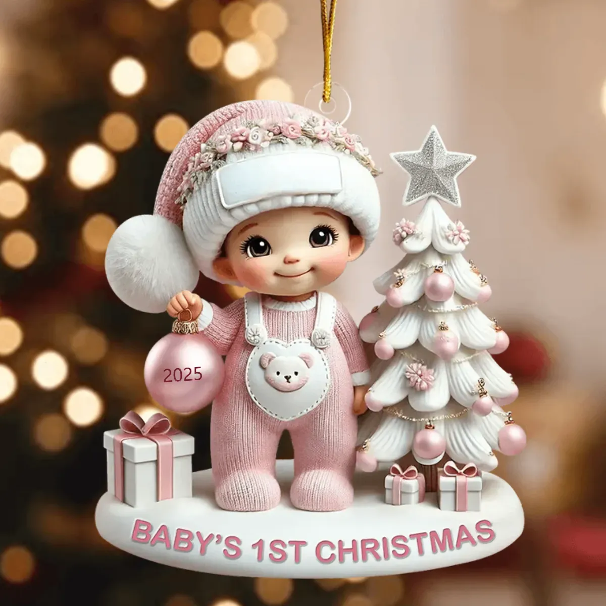 Cute Baby Standing Beside Christmas Tree 3D Effect Baby's First Christmas Personalized Ornament
