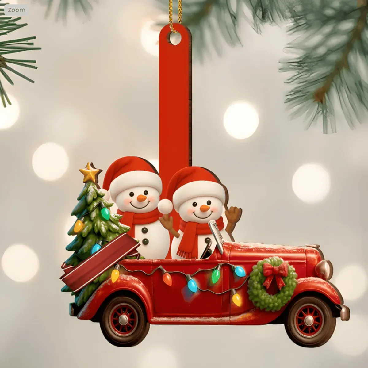 Holly Jolly Snowman Family - Personalized Christmas Wood Ornament