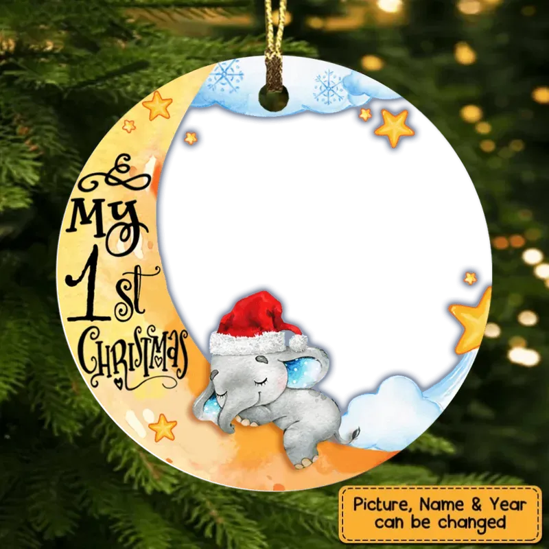 My First Christmas Elephant - Personalized Photo Ceramic Ornament