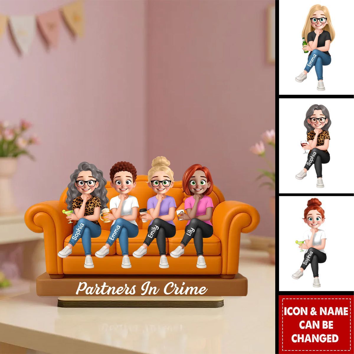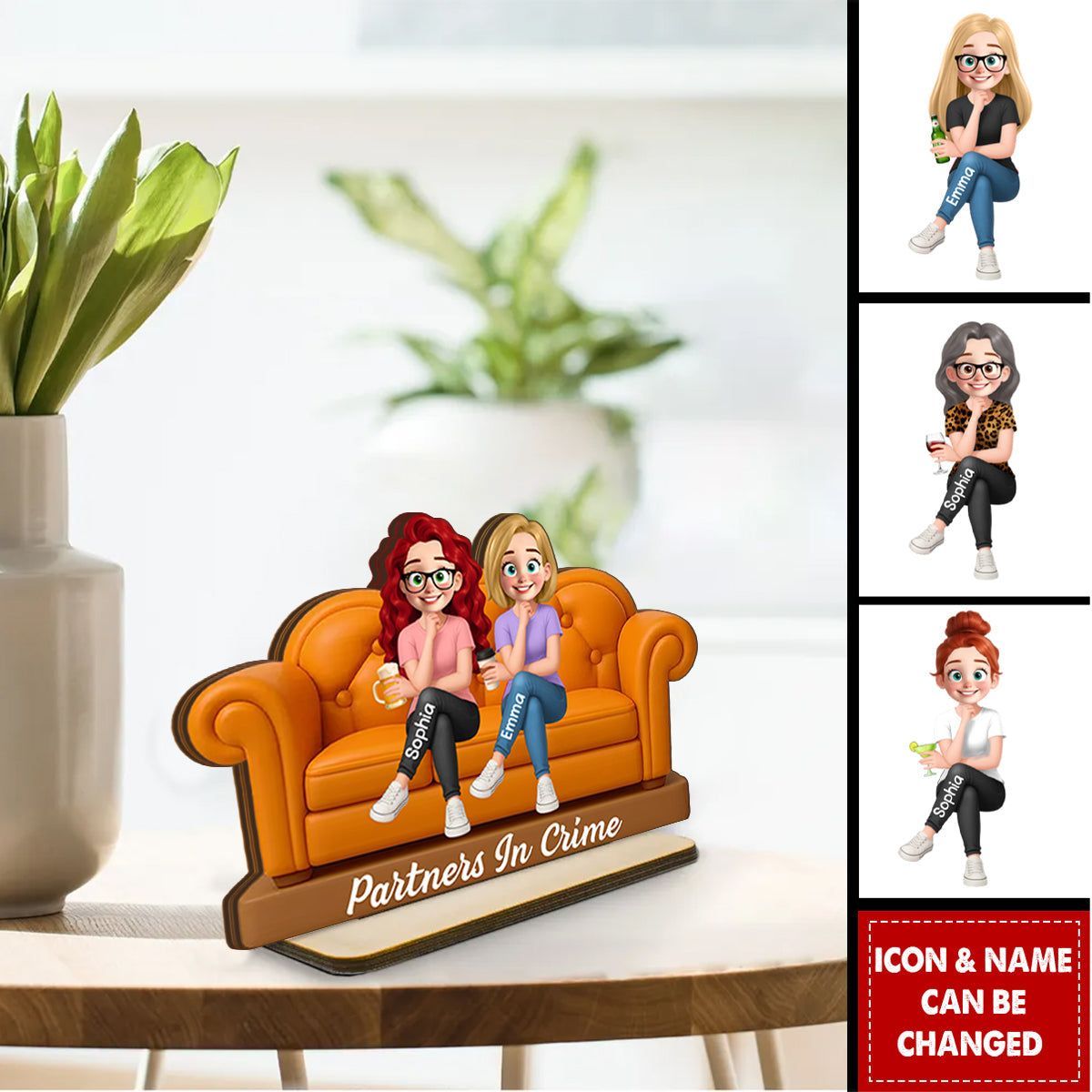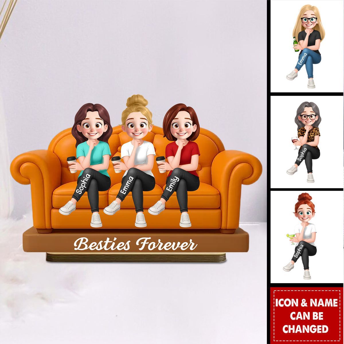 Besties Sitting On Sofa Personalized Wooden Standing Plaque, Gift for Besties, Sisters, Best Friends