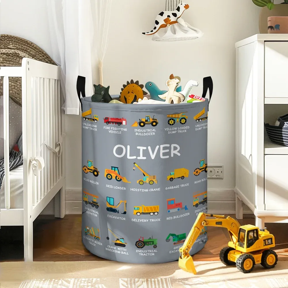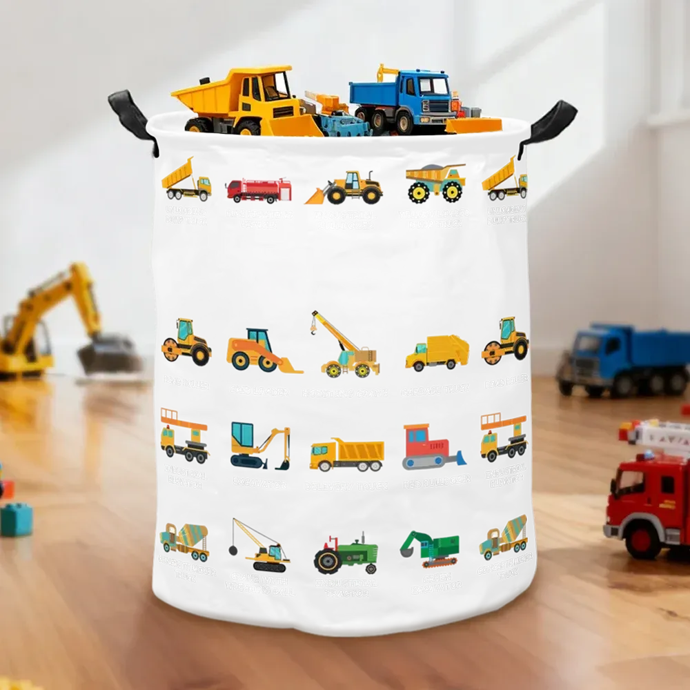 Building Fun One Load at a Time - Personalized Construction Truck Excavator Bulldozer Waterproof Laundry Basket - Gift for Boys Girls Truck Lovers