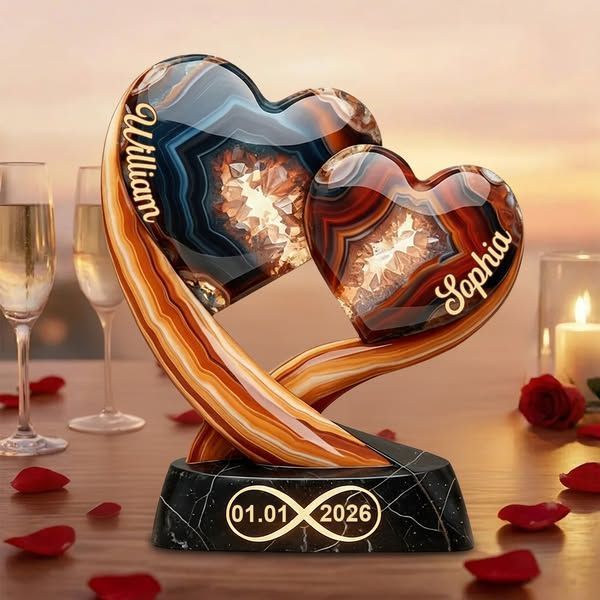 Together Forever Personalized Two Heart Couple Plaque