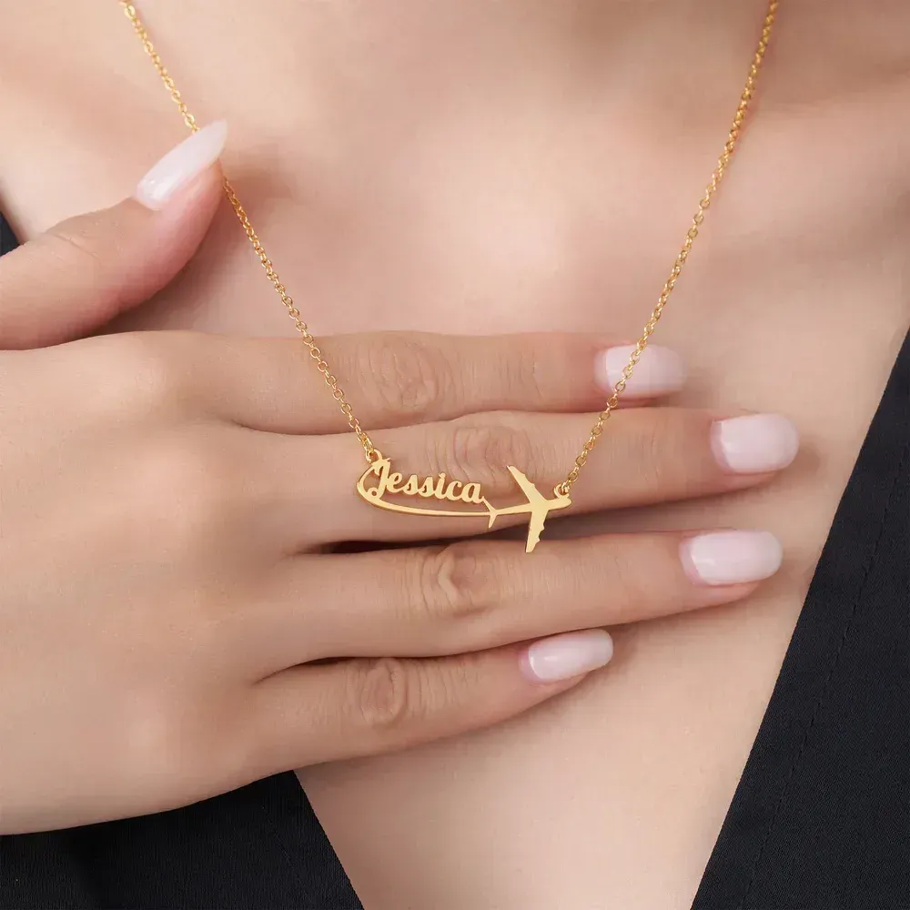 Personalized Airplane Sterling Silver Name Women Necklace Dainty Jewelry Birthday Anniversary Gift for Travel Lovers Pilots Flight Attendants