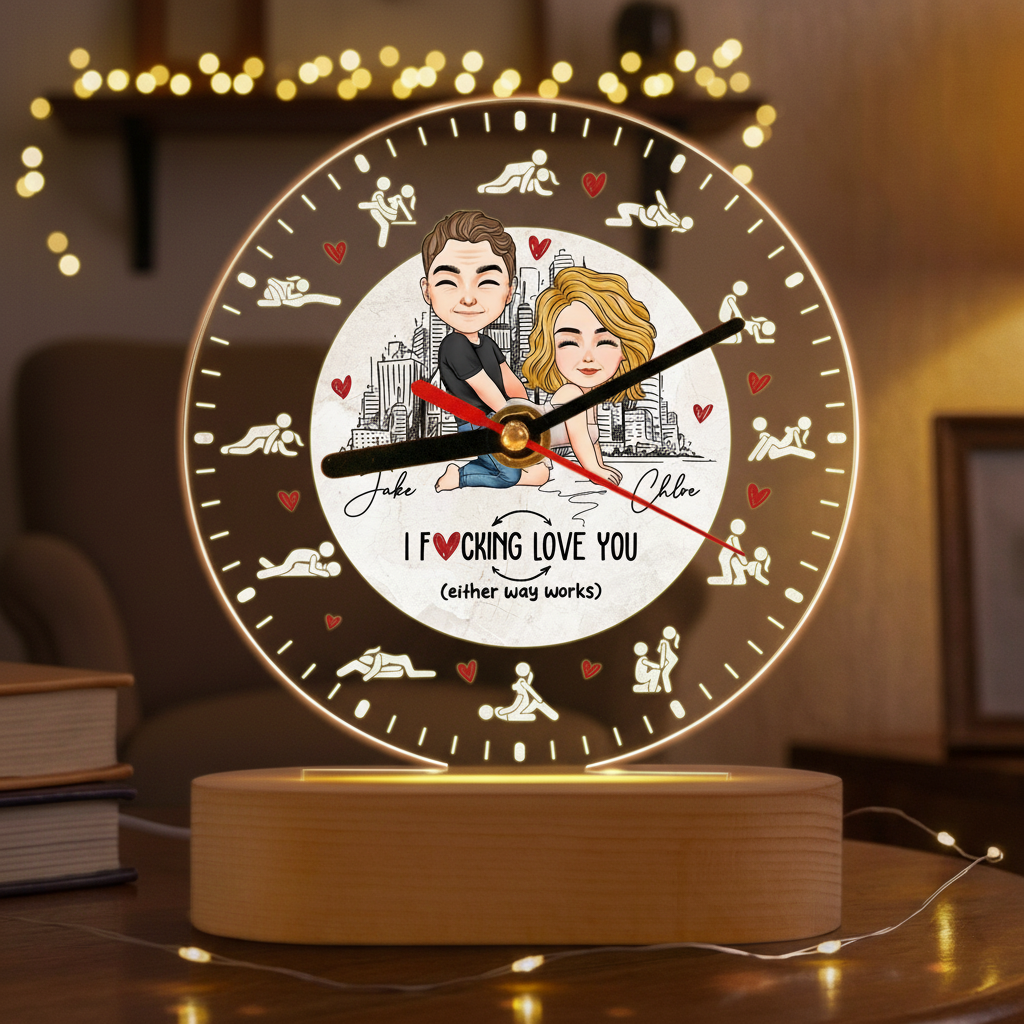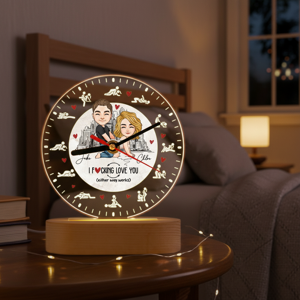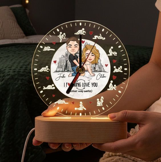 Personalized Romantic Night Light - I F Love You Either Way Works Acrylic Desk Clock for Couples