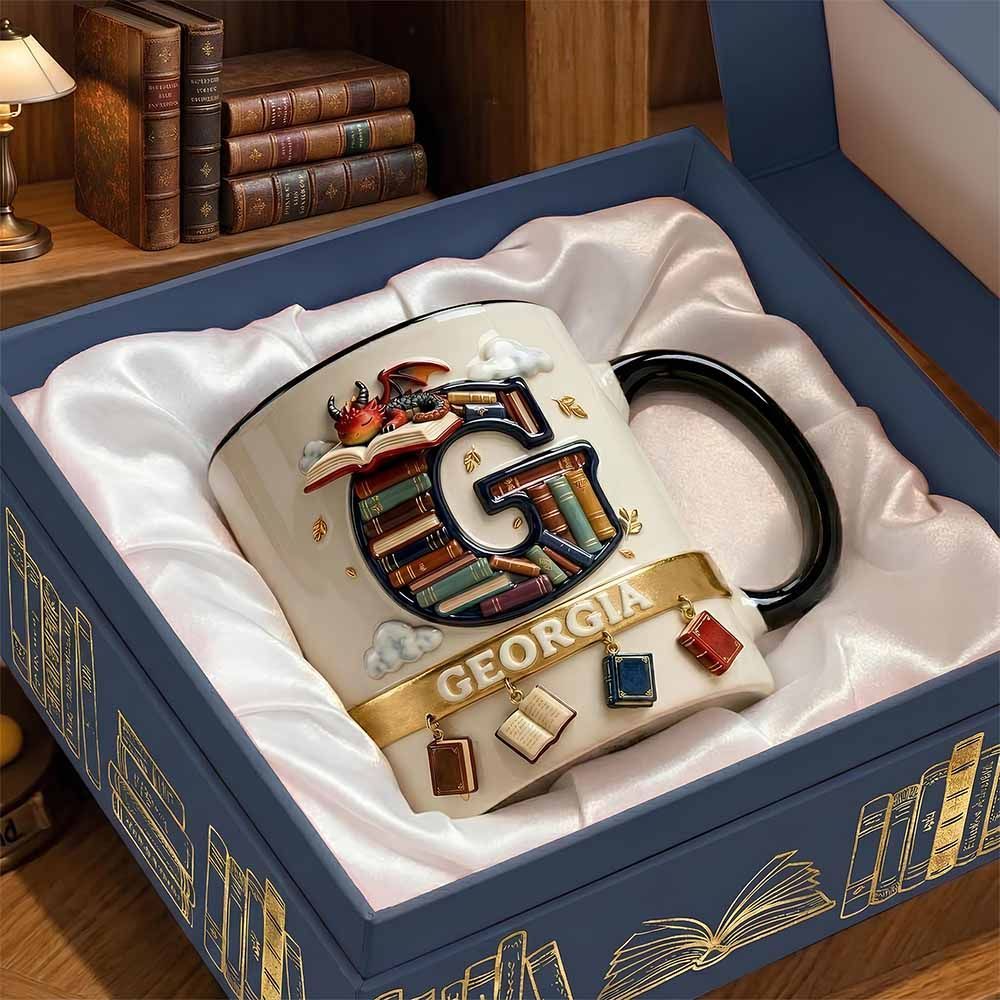 Personalised Book Dragon Initial Mug – A Meaningful Gift for Readers